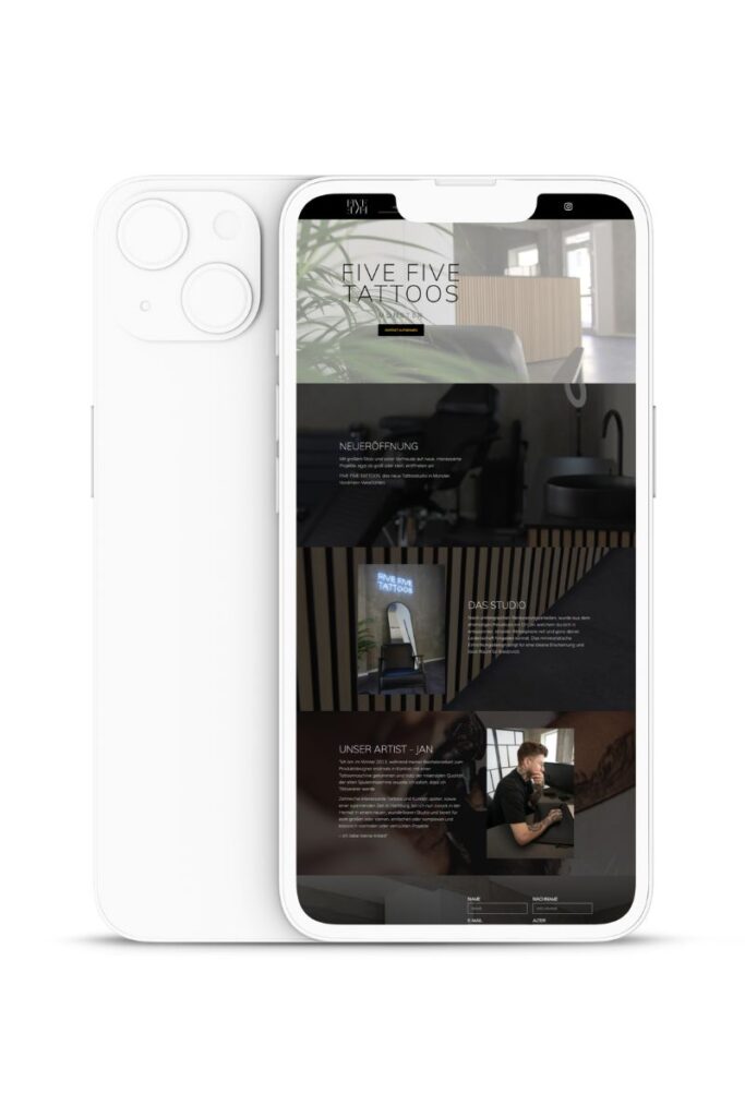 Wir haben eine SEO-optimierte, technisch ausgereifte Website für 55 Tattoos entwickelt, die durch modernes Design und interaktive Funktionen wie eine Tattoo-Galerie, Anfrageformular und Buchungsoptionen überzeugt. Mit klarer Struktur und schnellen Ladezeiten sorgt die Seite für ein komfortables Nutzererlebnis und einfachen Zugang zu allen Studioinfos.